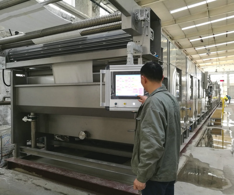 平幅煮漂机是低张力、高水洗效能的自动化针织棉前处置惩罚装备,,,,煮漂机的主要作用就是去除纤维上的蜡质、果胶物质、色素以及矿物质等杂质,,,,为后一道的染色历程提供需要的白度与毛效,,,,以便抵达染料上色的基础。。改变了古板的在染缸做前处置惩罚,,,,之后再在染缸中完成染色历程、后水洗、固色等多道工序的加工工艺,,,,有利于提高产品质量,,,,节约能耗。。