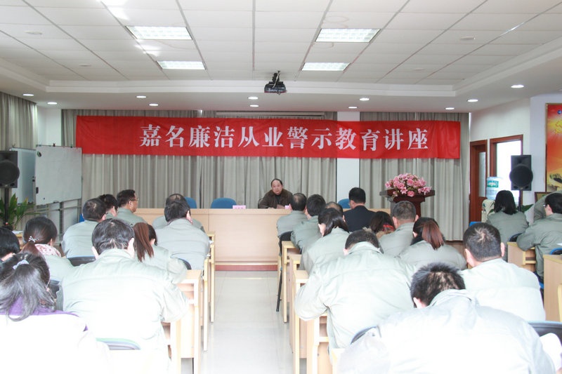 为增强谋划治理职员的从业清廉教育 ,,,,,增进公司上下认清形势、提高熟悉、遵章守纪、清廉从业 ,,,,,12月26日下昼 ,,,,,公司举行清廉从业警示教育专题讲座。。。公司向导 ,,,,,各部分、各事业部认真人 ,,,,,全体营销司理、外协职员 ,,,,,部分仓管员等50多人听取讲座。。。讲座约请桐乡市审查院原党组成员、副审查长沈俊夫就非公企业职务经济犯法的预防举行了深入解说 ,,,,,讲座还宣贯了《公司员工清廉从业划定》 ,,,,,公司莫总讲了话。。。