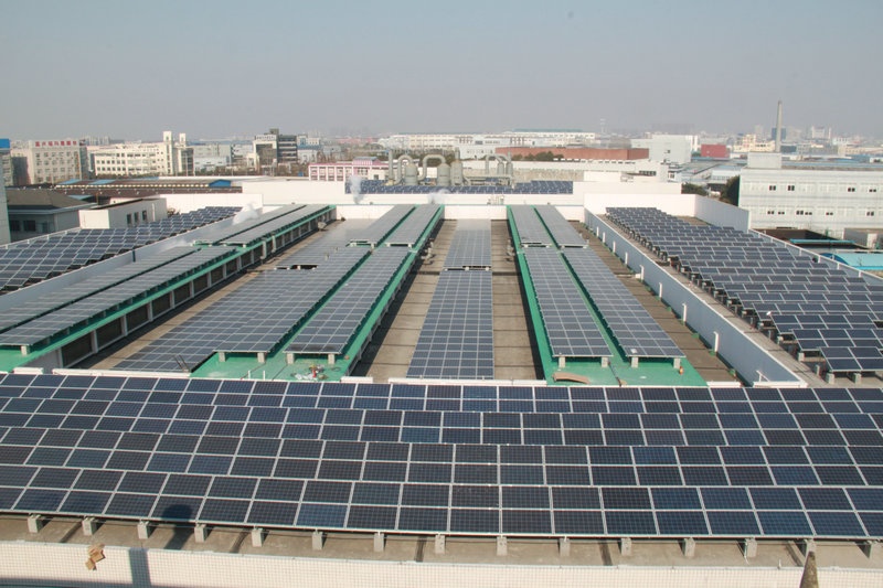 尊龙凯时公司一直以来十分重视企业的节能降耗事情,,,,,一直通过技改投入或接纳节能步伐,,,,,每年的节能降耗都在6%以上。。。。。2014年在节能降耗事情上又接纳了新的行动,,,,,使用厂区纺织、印花、印花定型三个车间混凝土修建屋顶约10000平方米的面积,,,,,建设0.81MWP漫衍式光伏并网发电项目。。。。。