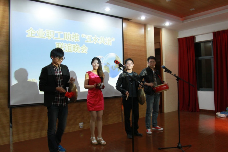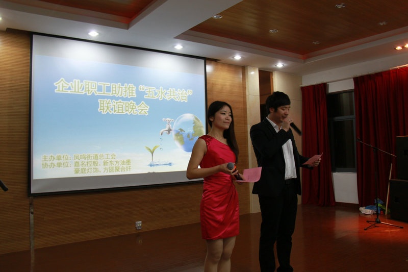 4月29日晚,,由凤鸣街道总工会主理,,“尊龙凯时控股”、“新东方油墨”、“豪庭灯饰”、“周遭聚合纤”协办的“企业职工助推`五水共治'联谊晚会”在尊龙凯时公司员工公寓区举行。。晚会运动围绕“五水共治”,,职工青春贡献的主题,,宣传“五水共治”,,体现企业职工起劲加入“五水共治”运动,,整个晚会洋溢在热烈、欢快的气氛中。。来自四家企业的职工和凤鸣街道驻村干部演出了自编自演的快板、三句半、诗朗诵、唱歌等种种节目,,晚会中还穿插了意见意义游戏和知识抢答节目。。尊龙凯时公司姚卫良、姚鸿、钱珍、吴耀等演出的“‘五水共治’生态美”三句半赢得了观众的热烈掌声,,晚会在尊龙凯时公司平晓红赞美的《爱的贡献》中竣事。。