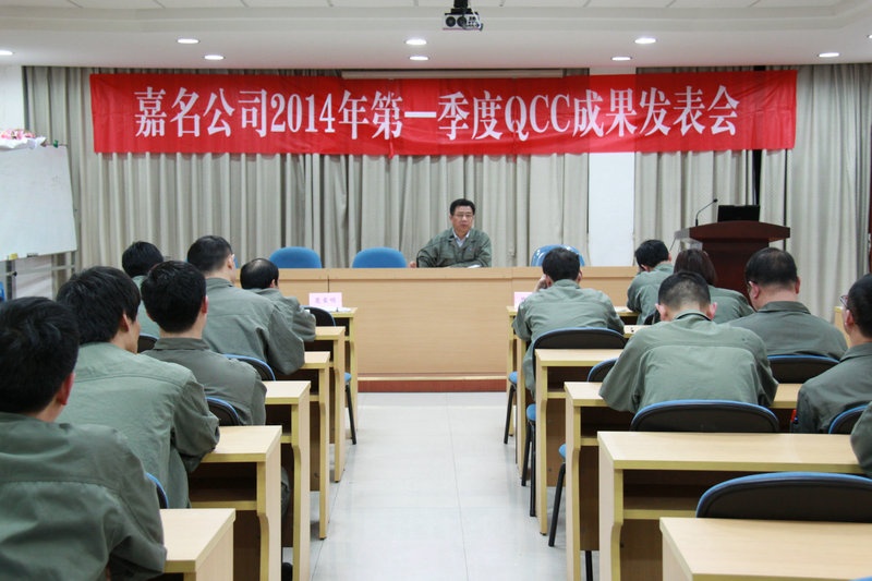 4月16日晚, ,,,,公司召开了第四届(2014年一季度)QCC效果揭晓会, ,,,,共有8个部分19项QCC效果揭晓, ,,,,加入这次QC小组运动的共有96名治理者和员工。。 。。 。经评委评分, ,,,,有8项获优异奖, ,,,,11项获勉励奖。。 。。 。