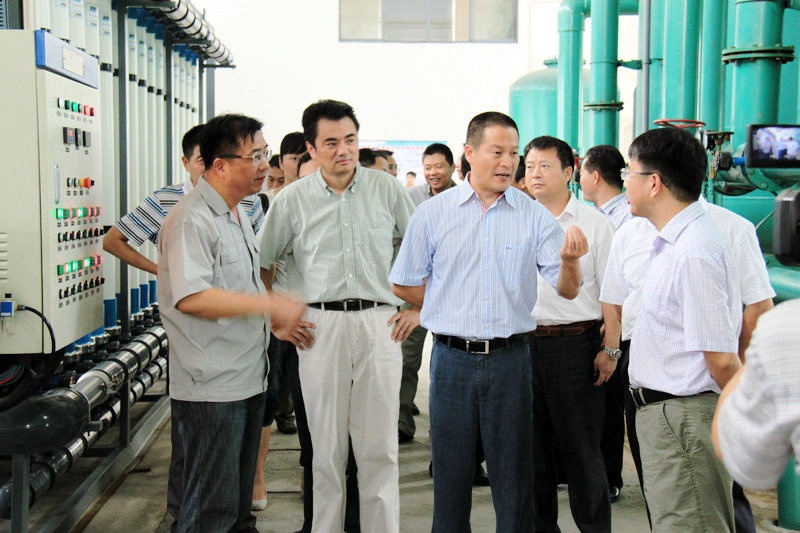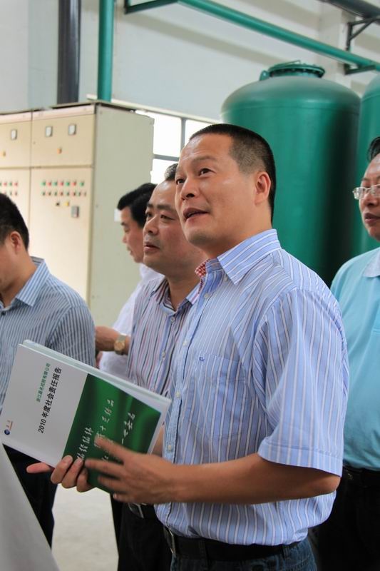 卢书记等向导一下车就来到水处置惩罚现场实地踏勘和检查了公司污水处置惩罚及废水回用的运行情形。。。。卢书记边看边向莫总询问了公司节能减排的步伐,,,,,对公司较强的环保意识,,,,,投入巨资建设污水处置惩罚系统和中水回用项目,,,,,对污水举行深度处置惩罚,,,,,回用比例较高,,,,,重复用水量大的做法体现充分一定,,,,,指出公司这一做法切合市委、市政府关于节能减排的要求,,,,,希望企业继续加大手艺刷新力度,,,,,做节能减排的“排头兵”。。。。当看到公司向社会公众宣布的《尊龙凯时公司2010年度社会责任报告》体现赞赏,,,,,希望公司以后更好地肩负社会责任。。。。卢书记一行还旅行了印花车间,,,,,相识了公司生产谋划情形,,,,,卢书记要求公司起劲开拓市场,,,,,增强企业治理,,,,,一直提高竞争力,,,,,增进公司又好又快生长。。。。
