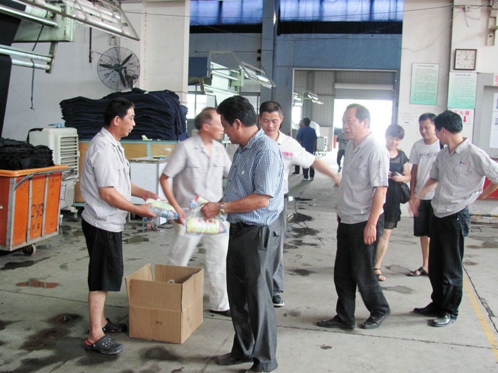 桐乡市总工会主席朱士良等向导来公司慰问高温下事情在一线的生产员工
